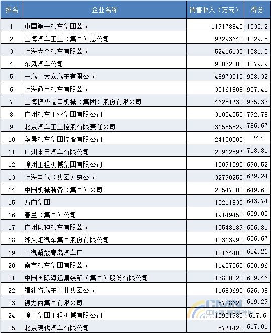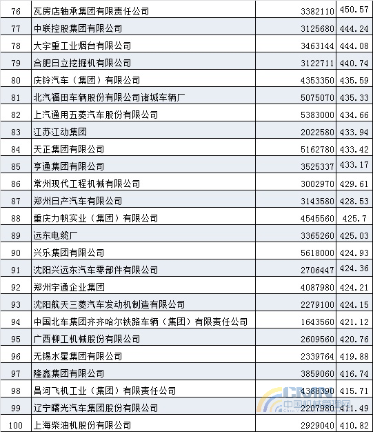 2004年中國(guó)機(jī)械500強(qiáng)排名(1-100)