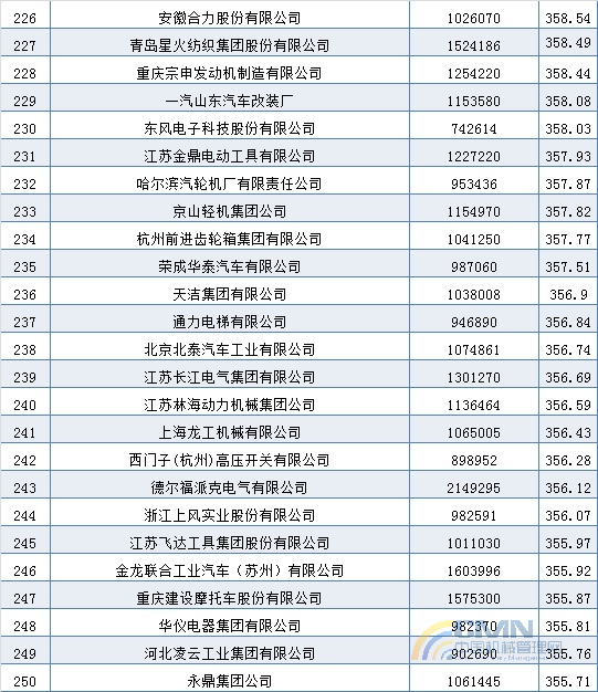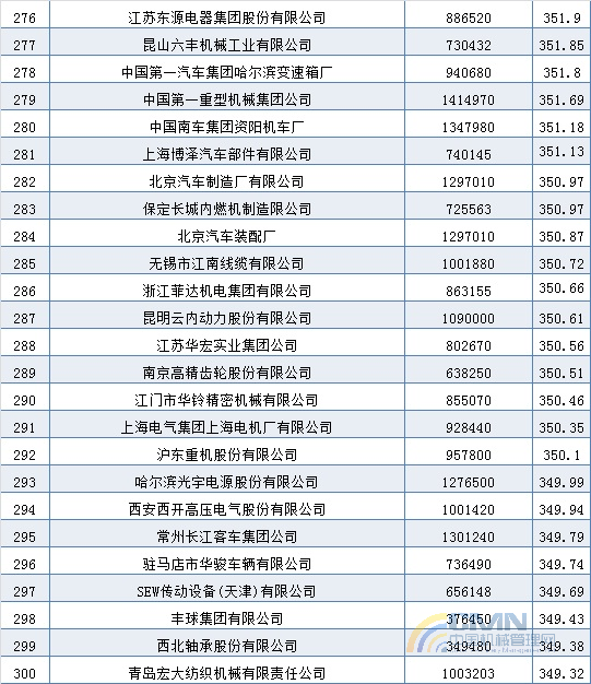 2004年中國機(jī)械500強(qiáng)排名(201-300)
