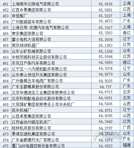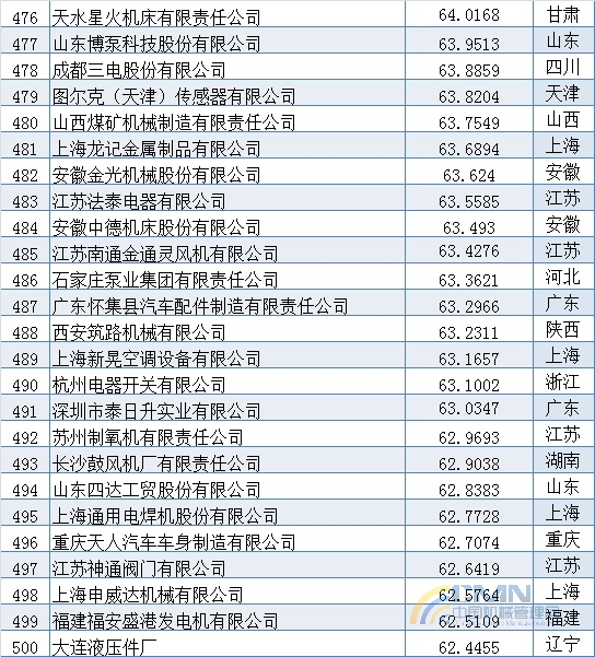 2005年中國機(jī)械500強(qiáng)排名(401-500)