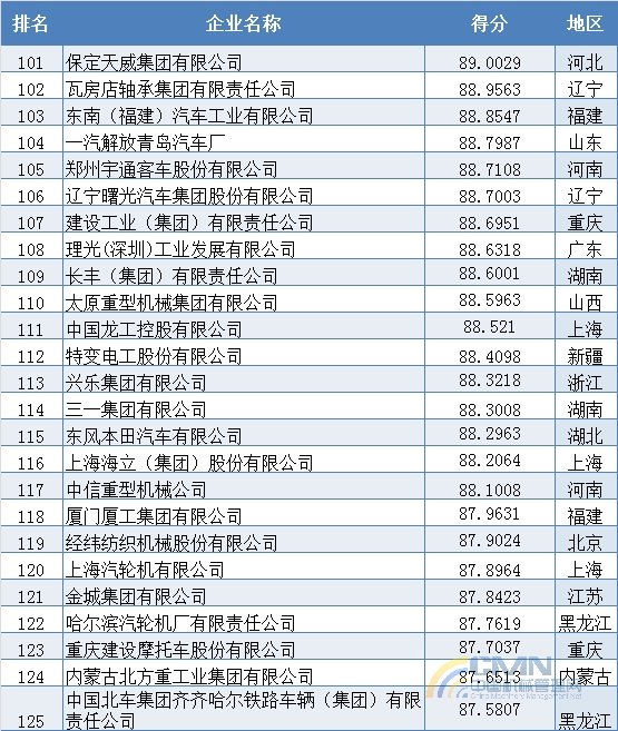 2006年中國機(jī)械500強(qiáng)排名(101-200)