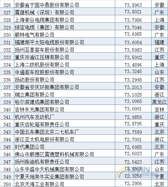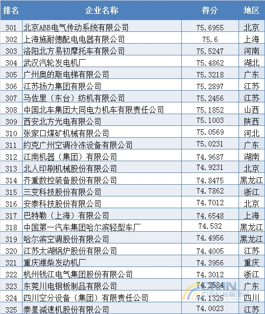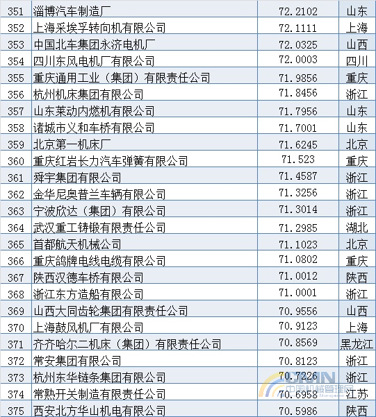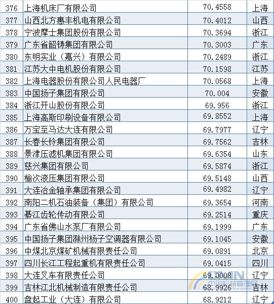 2006年中國機(jī)械500強(qiáng)排名(301-400)