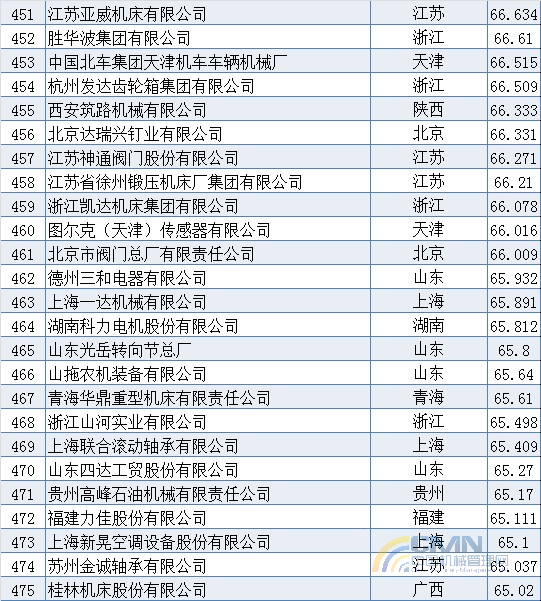2007年中國(guó)機(jī)械500強(qiáng)排名(401-500)