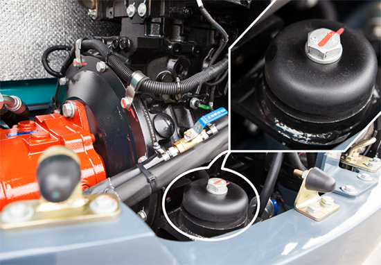 SWE70E升級新減震器,司機室減震器采用更大直徑減震器,提升可靠性,發(fā)動機減震器優(yōu)化減震形式,增加限位功能,保證安全性;振動加速度和振幅測試值已達行業(yè)前列水平,優(yōu)化工作環(huán)境。