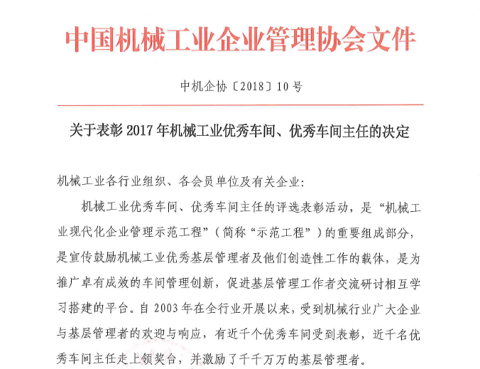 關(guān)于表彰機(jī)械工業(yè)優(yōu)秀車間、優(yōu)秀車間主任的決定-中機(jī)企協(xié)〔2018〕10號(hào).pdf