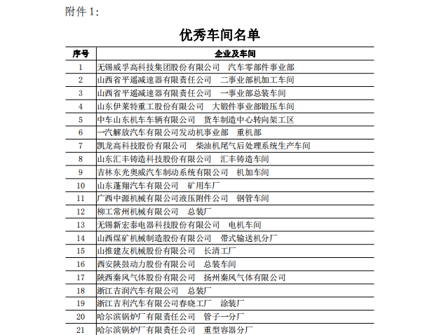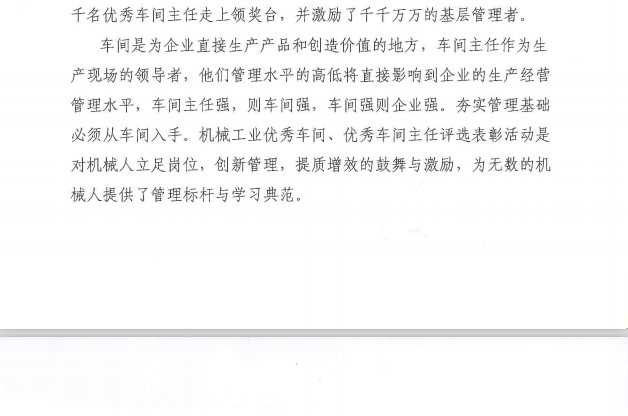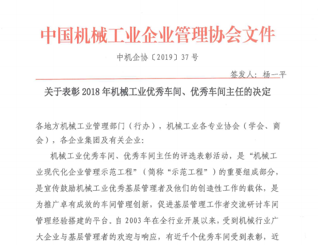 關于表彰2018年機械工業(yè)優(yōu)秀車間、優(yōu)秀車間主任的決定