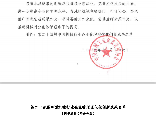 關(guān)于發(fā)布和推廣第二十四屆中國(guó)機(jī)械行業(yè)企業(yè)管理現(xiàn)代化創(chuàng)新成果的通知
