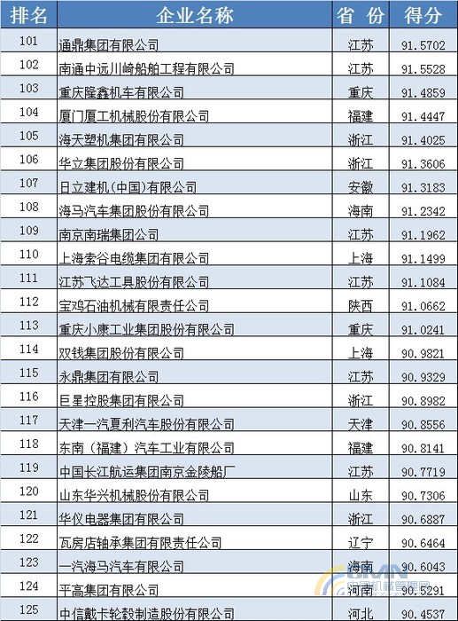 2012年中國(guó)機(jī)械500強(qiáng)排名(101-200)