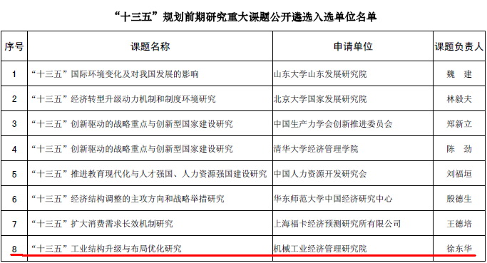 中國機(jī)械管理網(wǎng)訊 近日,我院繼獲得國家發(fā)展改革委“十二五”規(guī)劃前期重大課題后,又一次榮獲國家發(fā)改委“十三五”規(guī)劃前期重大課題——“十三五”規(guī)劃工業(yè)結(jié)構(gòu)升級(jí)與布局優(yōu)化研究。