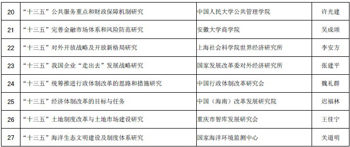 附件:“十三五”規(guī)劃前期研究重大課題公開遴選入選單位名單