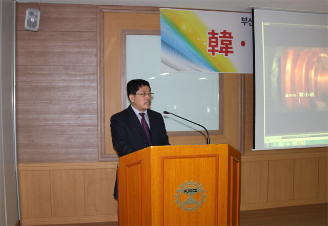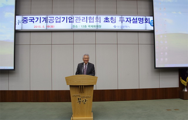 在致詞中歡迎中方企業(yè)家來(lái)韓合作交流,并介紹釜山的地理優(yōu)勢(shì)和制造業(yè)能力,他說(shuō)釜山的機(jī)械產(chǎn)品產(chǎn)值占韓國(guó)整體機(jī)械工業(yè)55%,有7萬(wàn)多家機(jī)械及相關(guān)企業(yè)在釜山及周邊地區(qū),是韓國(guó)機(jī)械和機(jī)械加工產(chǎn)業(yè)的最大集散地。強(qiáng)調(diào)中韓企業(yè)合作潛力巨大,中國(guó)市場(chǎng)前景廣闊,中國(guó)經(jīng)濟(jì)發(fā)展令世人羨慕,希望通過(guò)中韓兩國(guó)政府和行業(yè)組織的密切合作,促進(jìn)兩國(guó)企業(yè)的快速發(fā)展。
