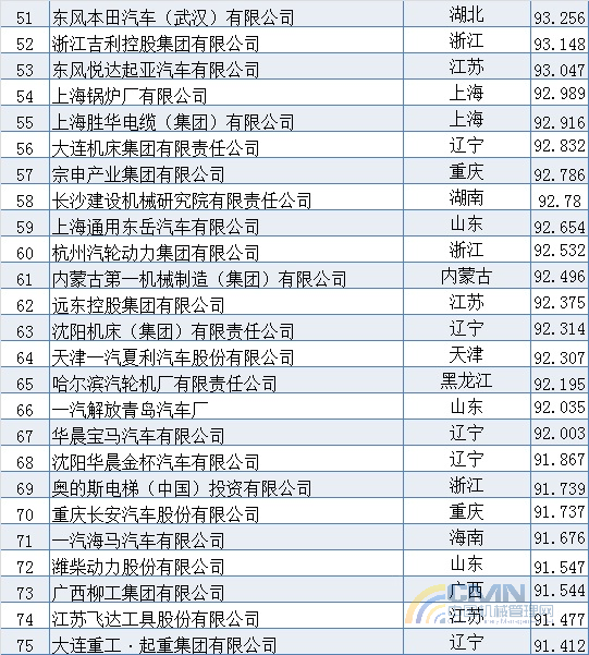 2007年中國(guó)機(jī)械500強(qiáng)排名(1-100)