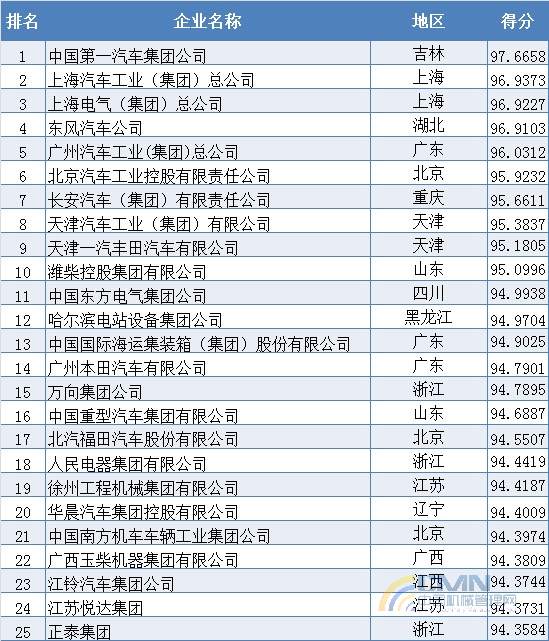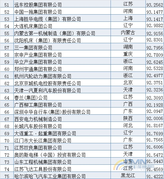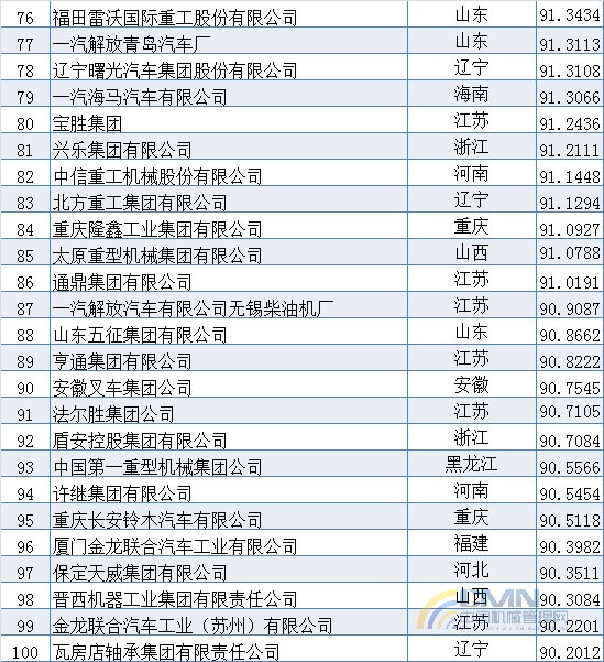 2008年中國(guó)機(jī)械500強(qiáng)排名(1-100)