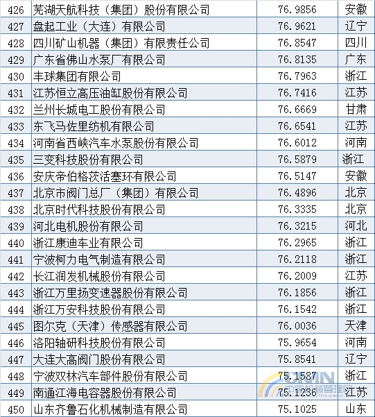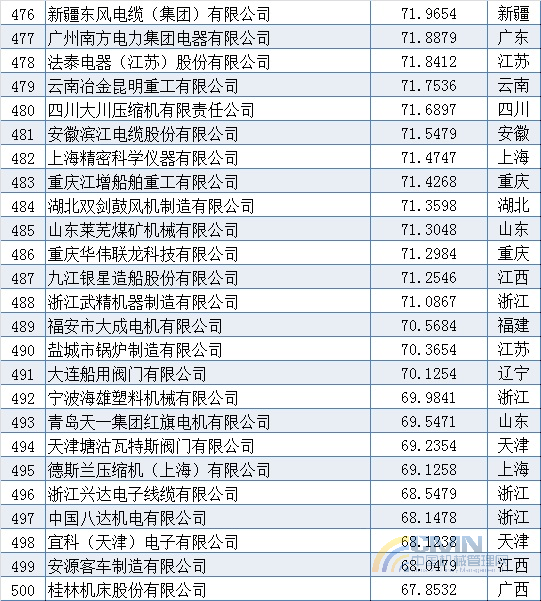 2011年中國機械500強排名(401-500)