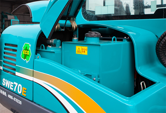 SWE70E升級通用化油箱,液壓油箱的吸油、回油濾芯與全系小挖均通用,濾芯更換方式簡單快捷,燃油箱加油口加大,加油更快速,鎖蓋加強加大,油箱更安全。