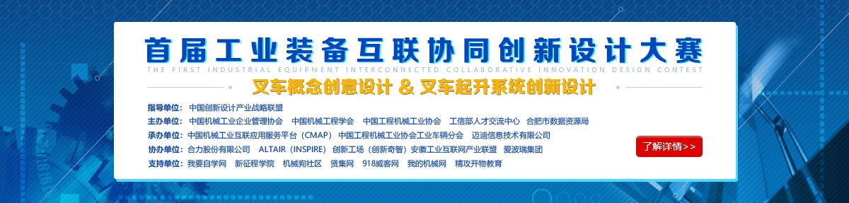 首屆工業(yè)裝備互聯(lián)協(xié)同創(chuàng)新設(shè)計大賽--叉車專題賽,是一項推動中國制造走向中國智造的大型網(wǎng)上工業(yè)設(shè)計競賽活動。旨在利用互聯(lián)網(wǎng)信息技術(shù)和先進IT、AI設(shè)計軟件,聚合眾多優(yōu)秀設(shè)計工程師和設(shè)計專業(yè)人士及企業(yè)設(shè)計團隊,在制造業(yè)互聯(lián)應(yīng)用服務(wù)的大平臺上,在工業(yè)車輛(叉車)的設(shè)計領(lǐng)域,創(chuàng)造崇尚設(shè)計科技、聚集設(shè)計智慧、創(chuàng)新設(shè)計方法、展示設(shè)計成果,突出設(shè)計崗位人才濟濟的時代氛圍。