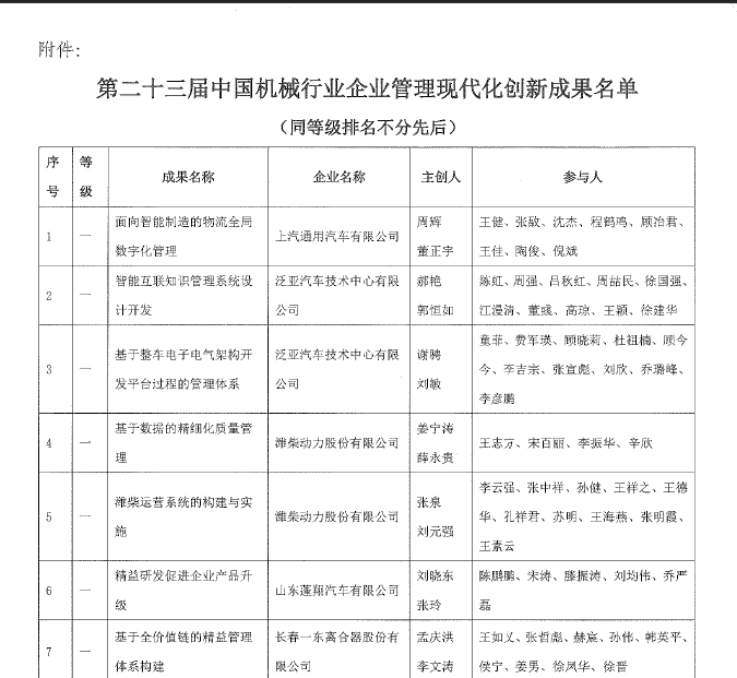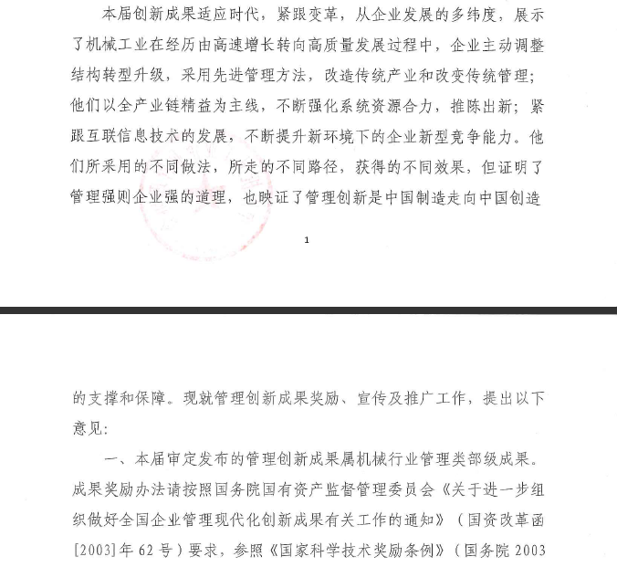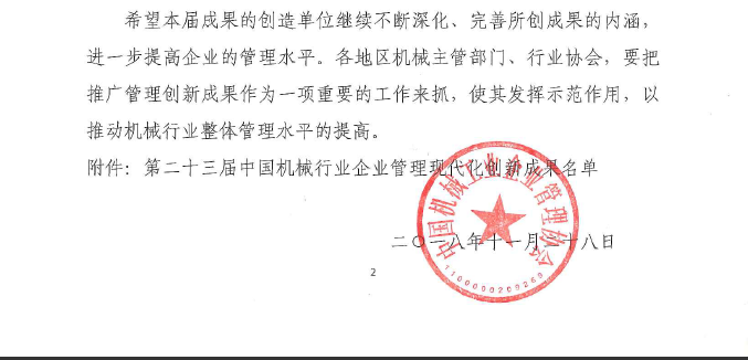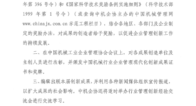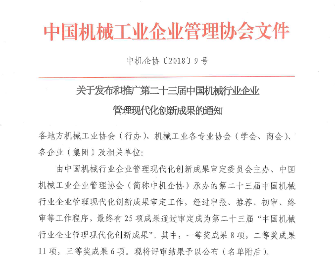 關(guān)于發(fā)布和推廣第二十三屆中國機(jī)械行業(yè)企業(yè)管理現(xiàn)代化創(chuàng)新成果的通知