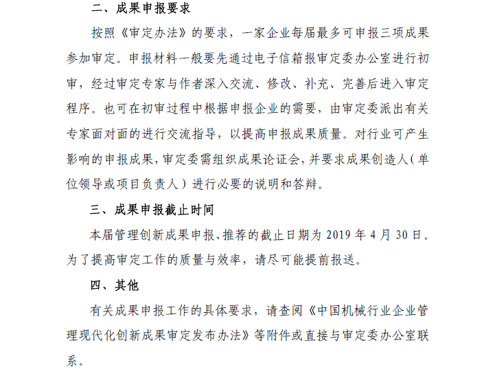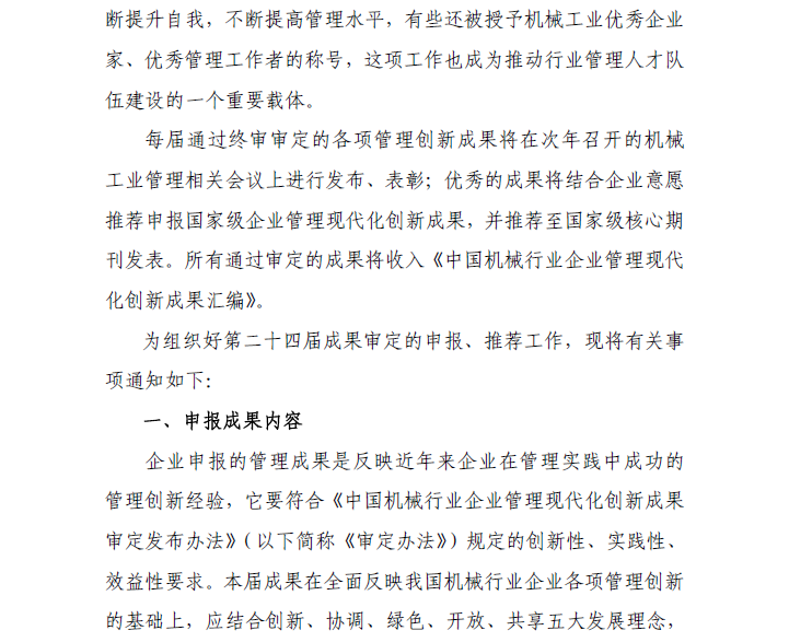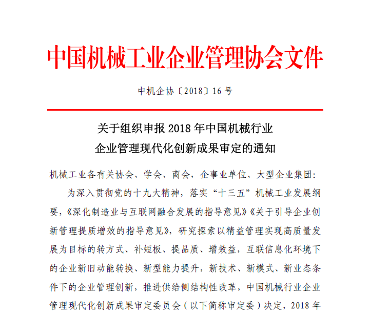 關于組織申報2018年中國機械行業(yè)企業(yè)管理現(xiàn)代化創(chuàng)新成果審定的通知