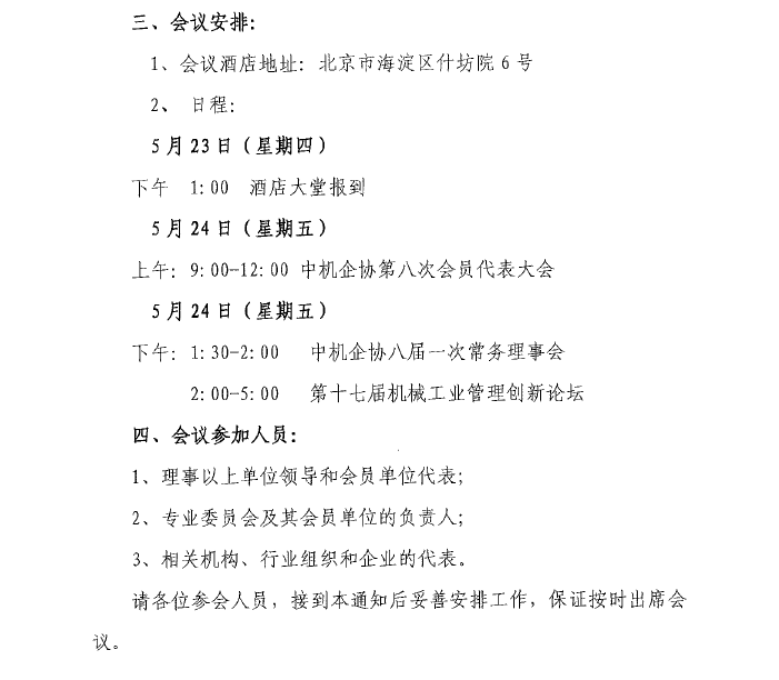 中機企協(xié)第八次會員代表大會暨八屆一次理事(擴大)會議通知