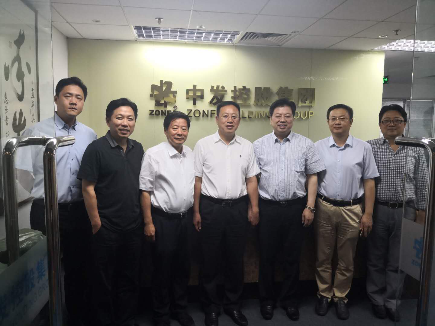 于中赤會長(中)、楊一平常務(wù)副會長(左三)、楊征秘書長(右二)與陳鄧華董事長(右三)等中發(fā)集團(tuán)領(lǐng)導(dǎo)合影