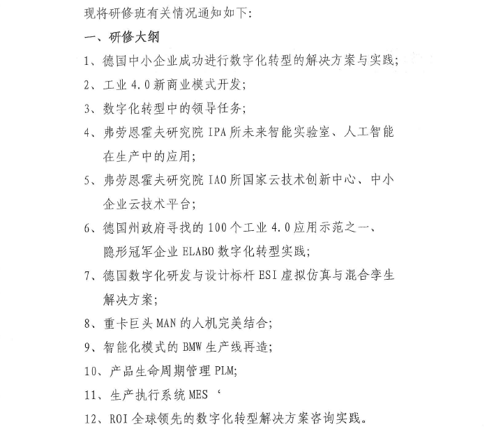 關(guān)于在德國(guó)舉辦"中小企業(yè)數(shù)字化轉(zhuǎn)型對(duì)標(biāo)與實(shí)踐高端研修班"的通知
