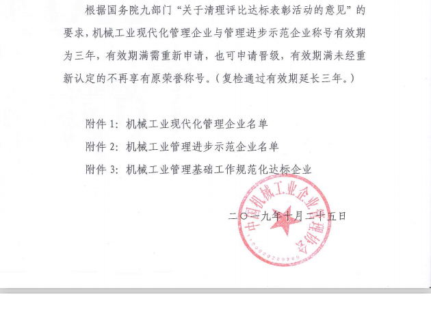 關于公布第15批機械工業(yè)現(xiàn)代化管理企業(yè)、第22批管理進步示范企業(yè)的決定